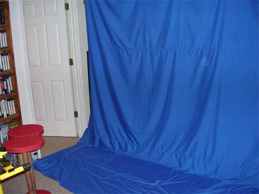 The room we were filming in would have been a great size if we had taken all the furniture out, but that wasn’t really practical. So all seven of us crammed in between the couches, television, speakers, bookcases, recliner, and foosball table. Us, and two of our biggest production lights. When you get that many heat-producing bodies in that size of an area, things warm up really quick. With the lights it was just awful. Oh, and then we lost about three feet off of one end of the room because the weather-balloon of a blue screen had to hang a ways out from the wall. But somehow we all crammed in there and made it to filming.